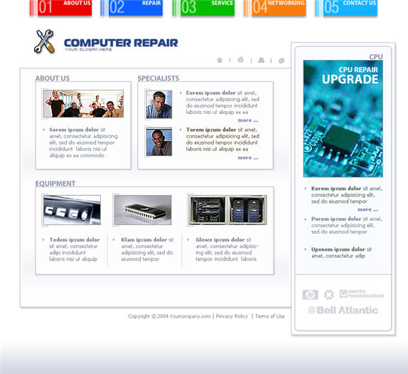 IT repair company's Web site interface