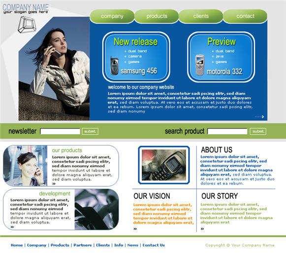 Business Communication Company's Web site page template psd, htm, fonts
