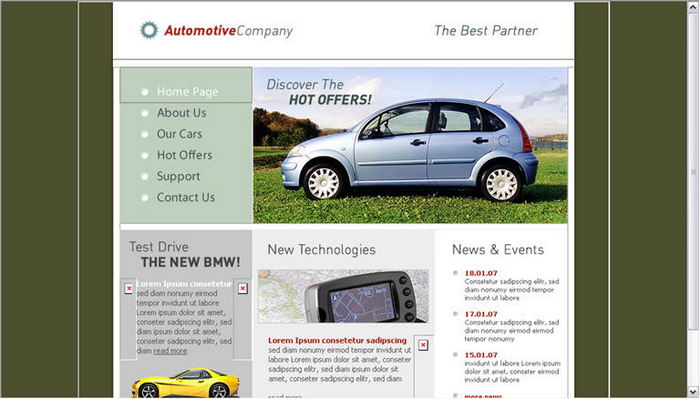 Motor Company web page templates
