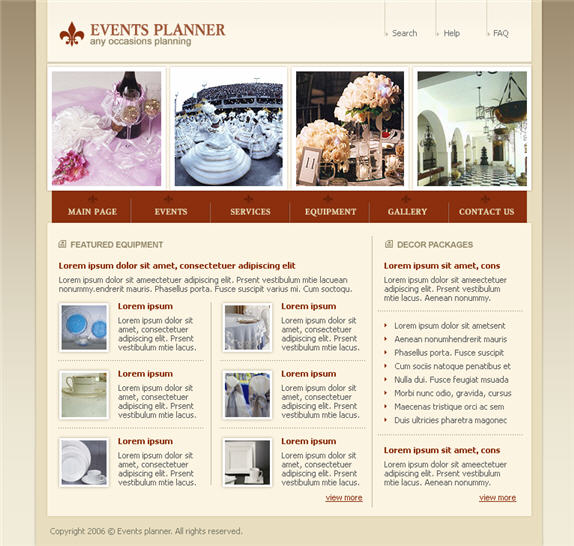 Party planning business website template activity