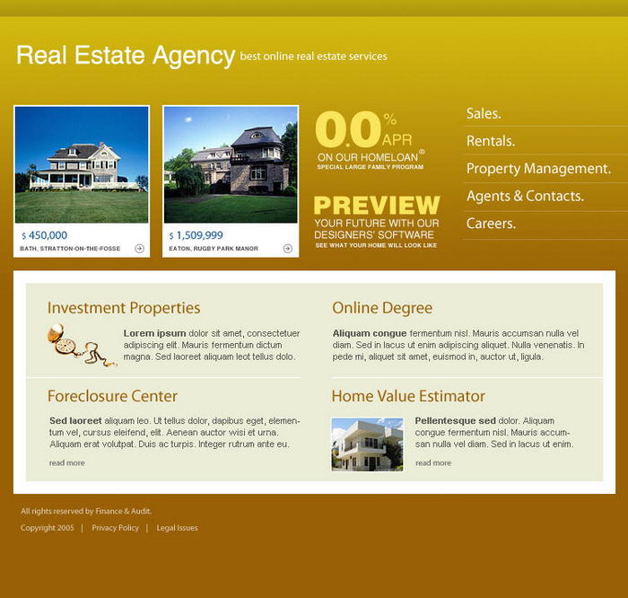 Real estate company's Web site layout